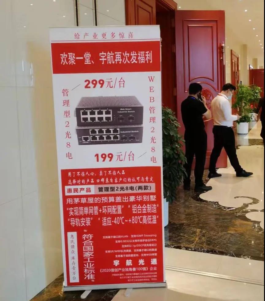 在本次會議中,宇航工業交換機再次發福利,管理型2光8電僅【299元/臺】,WEB管理型2光8電僅【199元/臺】。用茅草屋的預算蓋出豪華別墅的效果,鋁合金制造、導軌式安裝,寬溫-40℃~+80℃,可實現簡單網管+環網配置。一樣的好品質,不一樣的價格,只為回饋廣大用戶對宇航的支持~