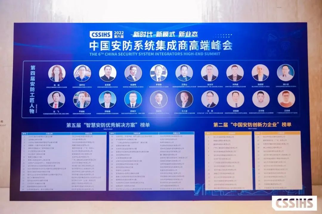 此次主題為“新時代 新模式 新業態”第六屆中國安防系統集成商高端峰會由深圳市安全防范行業協會、CPS中安傳媒、CPS中安網主辦,安防系統集成專業委員會協辦,華為、海康威視、大華股份、達實智能、熵基科技、鐳神智能、海清視訊、HID安保迪、宇泛科技、海曼股份、東莞福澤爾等單位支持,宇航也有幸參與其中,并榮獲三大獎項。