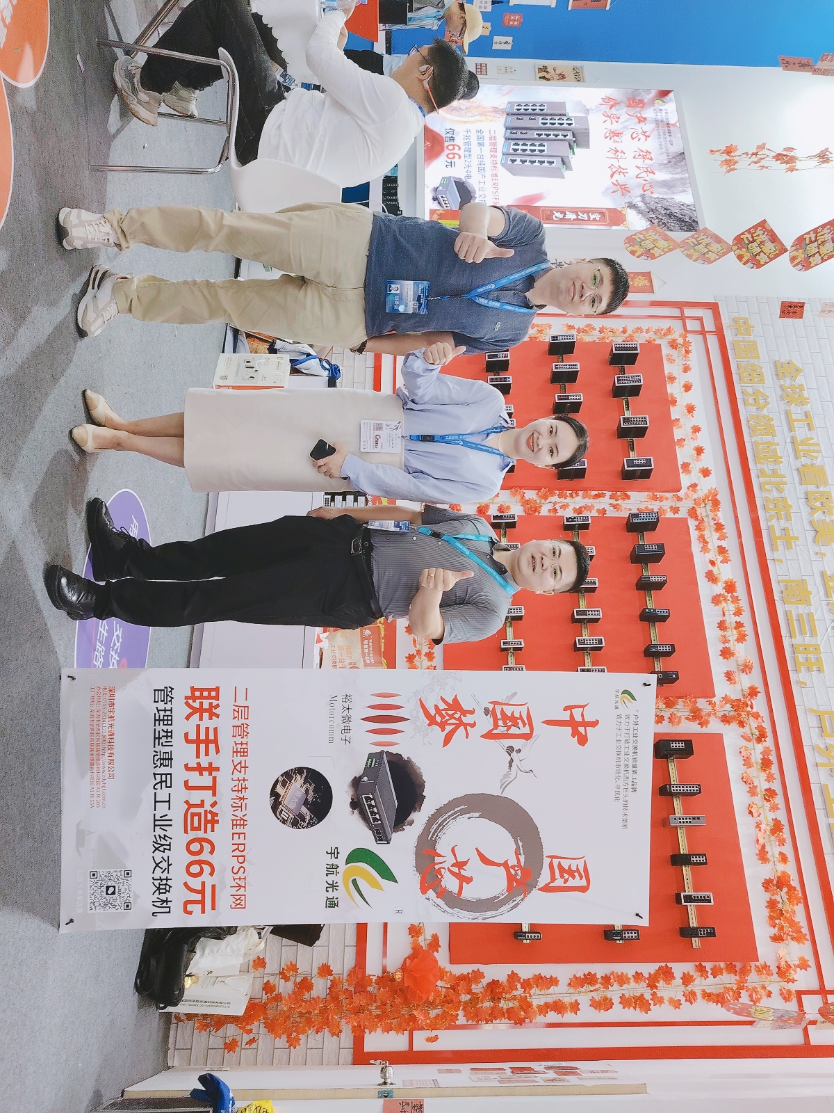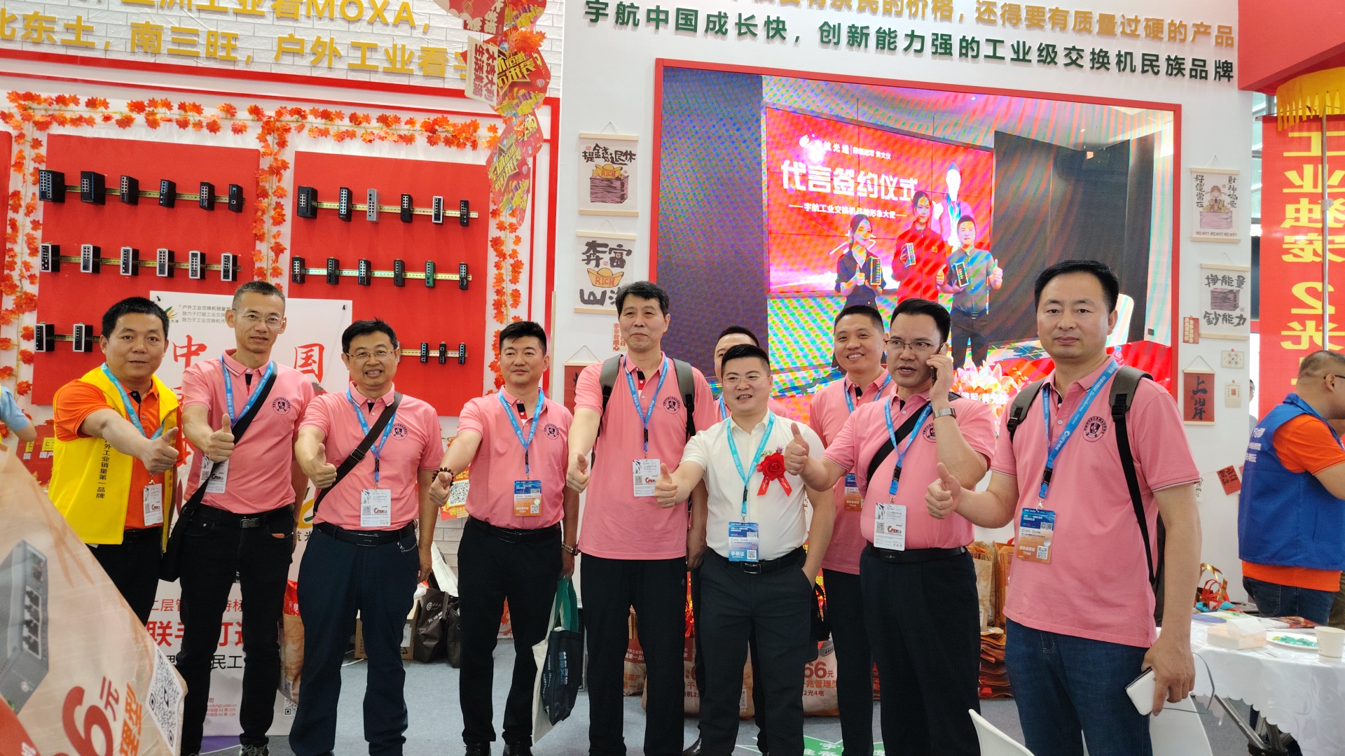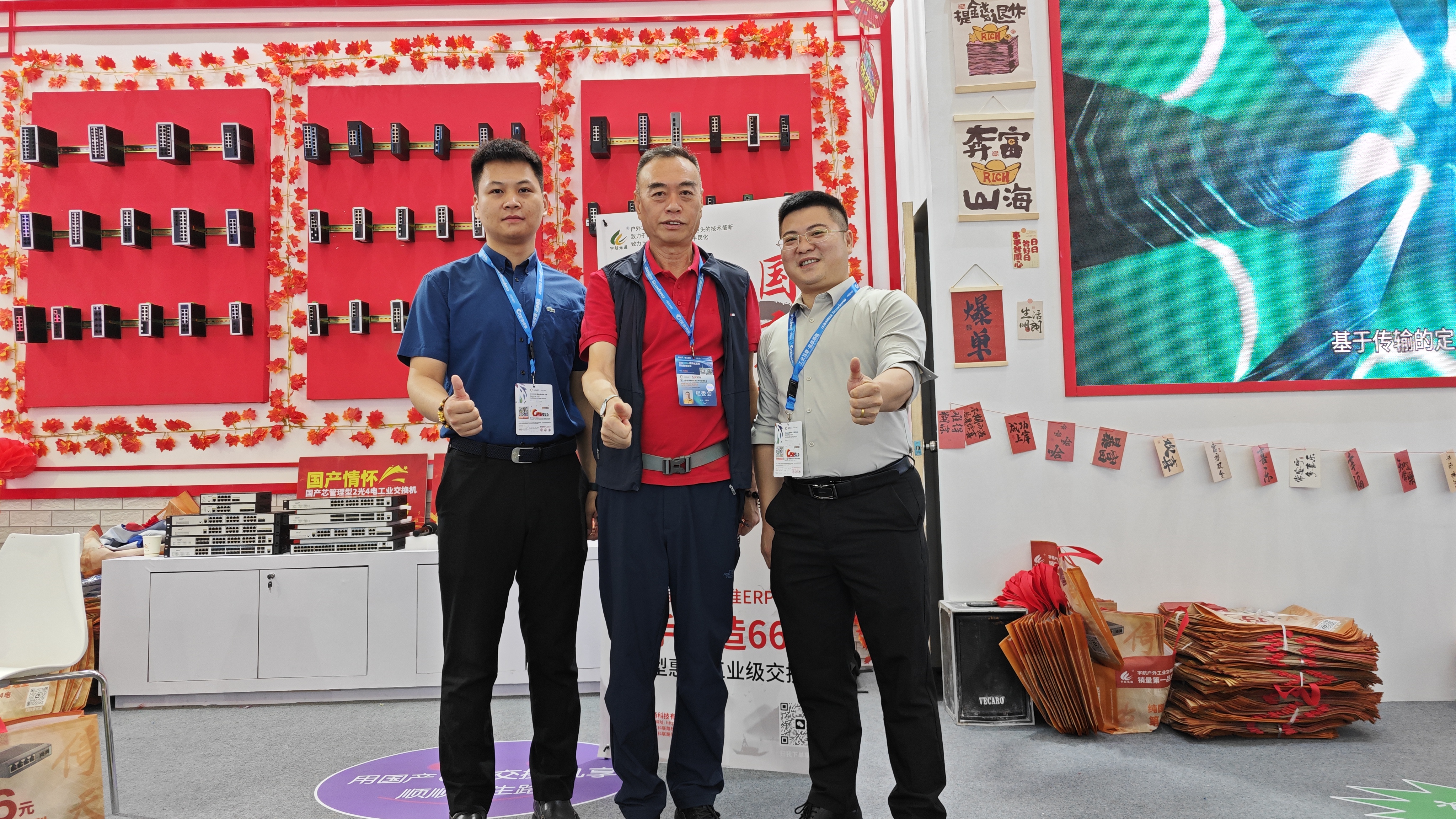 宇航工業(yè)交換機(jī)劉總受邀參加CPSE安博會(huì)開(kāi)幕式(第二排左二) 宇航是戶(hù)外工業(yè)銷(xiāo)量第一品牌,本次展會(huì)宇航順應(yīng)潮流,以中國(guó)紅為背景,結(jié)合當(dāng)前“00后”慣用的網(wǎng)絡(luò)流行語(yǔ)來(lái)打造展館,兩種元素相互碰撞,獨(dú)具匠心,整個(gè)展館充滿(mǎn)活力和年輕氣息,吸引了眾多嘉賓駐足觀看,前來(lái)打卡留念的觀眾絡(luò)繹不絕。