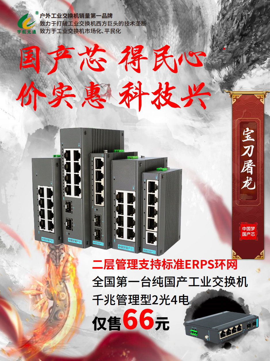 宇航工業(yè)交換機(jī)全國(guó)產(chǎn)管理型千兆2光4電工業(yè)級(jí)交換機(jī)是全球第一臺(tái)100%全國(guó)產(chǎn)工業(yè)級(jí)管理型交換機(jī),其重要意義不言而喻。宇航率先邁出全國(guó)產(chǎn)的第一步,這是充滿(mǎn)勇氣和智慧的一步。宇航工業(yè)交換機(jī)張總表示:“作為一個(gè)企業(yè)要有自己的使命和擔(dān)當(dāng),助力祖國(guó)繁榮富強(qiáng)就是宇航的使命和擔(dān)當(dāng)。為了以后我們不再受美國(guó)對(duì)我們芯片的打壓,這一步宇航必須要走,我們不怕別人打壓我們,就算被打壓也要堅(jiān)持做下去。”