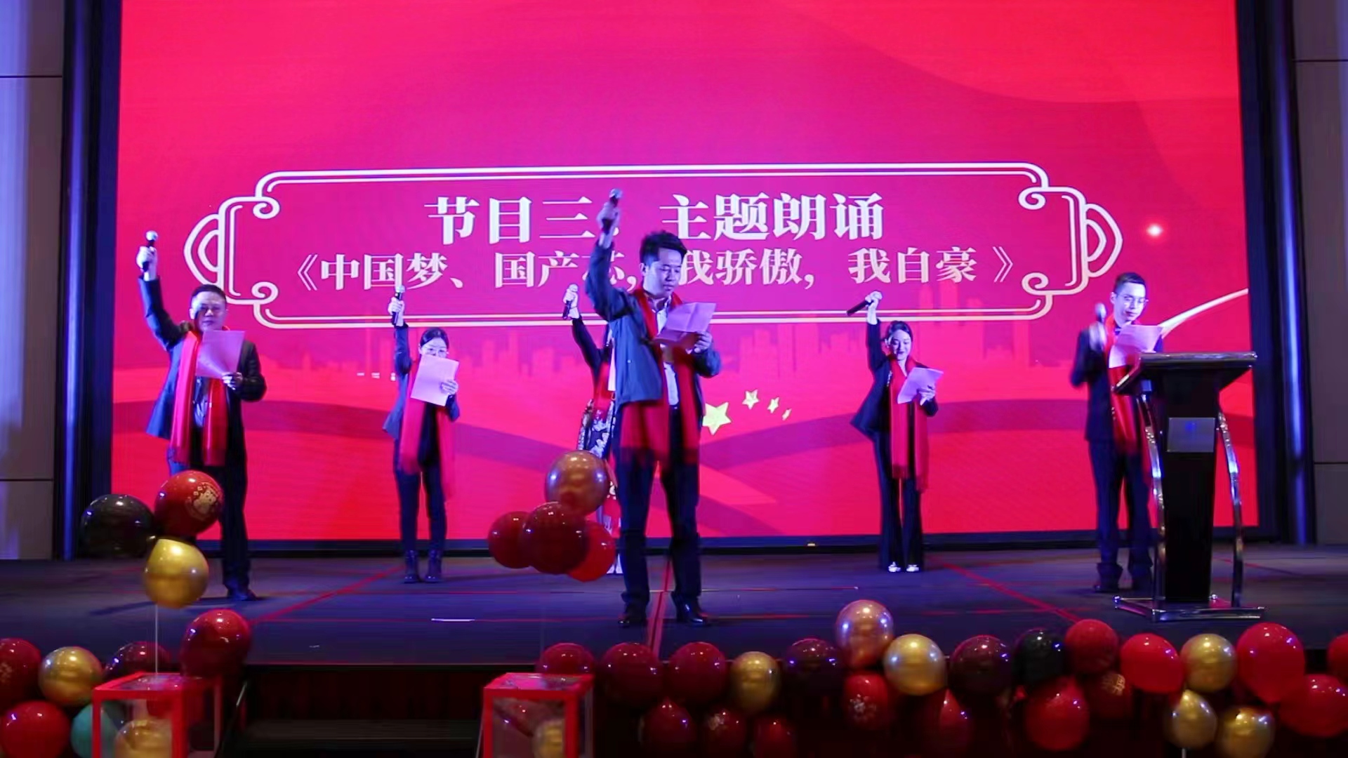 宇航工業(yè)交換機營銷副總張玉平帶領(lǐng)宇航的特戰(zhàn)隊員們,帶來了《中國夢、國產(chǎn)芯,我驕傲,我自豪》主題朗誦。他們鏗鏘有力的聲音回蕩在會場的每個角落,傳遞著對祖國的無限熱愛和對全國產(chǎn)工業(yè)交換機的自豪。隨著他們朗誦的深入,現(xiàn)場觀眾的情感也被逐漸點燃。那激昂的語調(diào)、飽滿的情感,讓整個會場沉浸在一片肅穆而激昂的氣氛中,掌聲、歡呼聲此起彼伏,大家都被這份深沉的愛國情懷所感染,心情隨之飛揚。