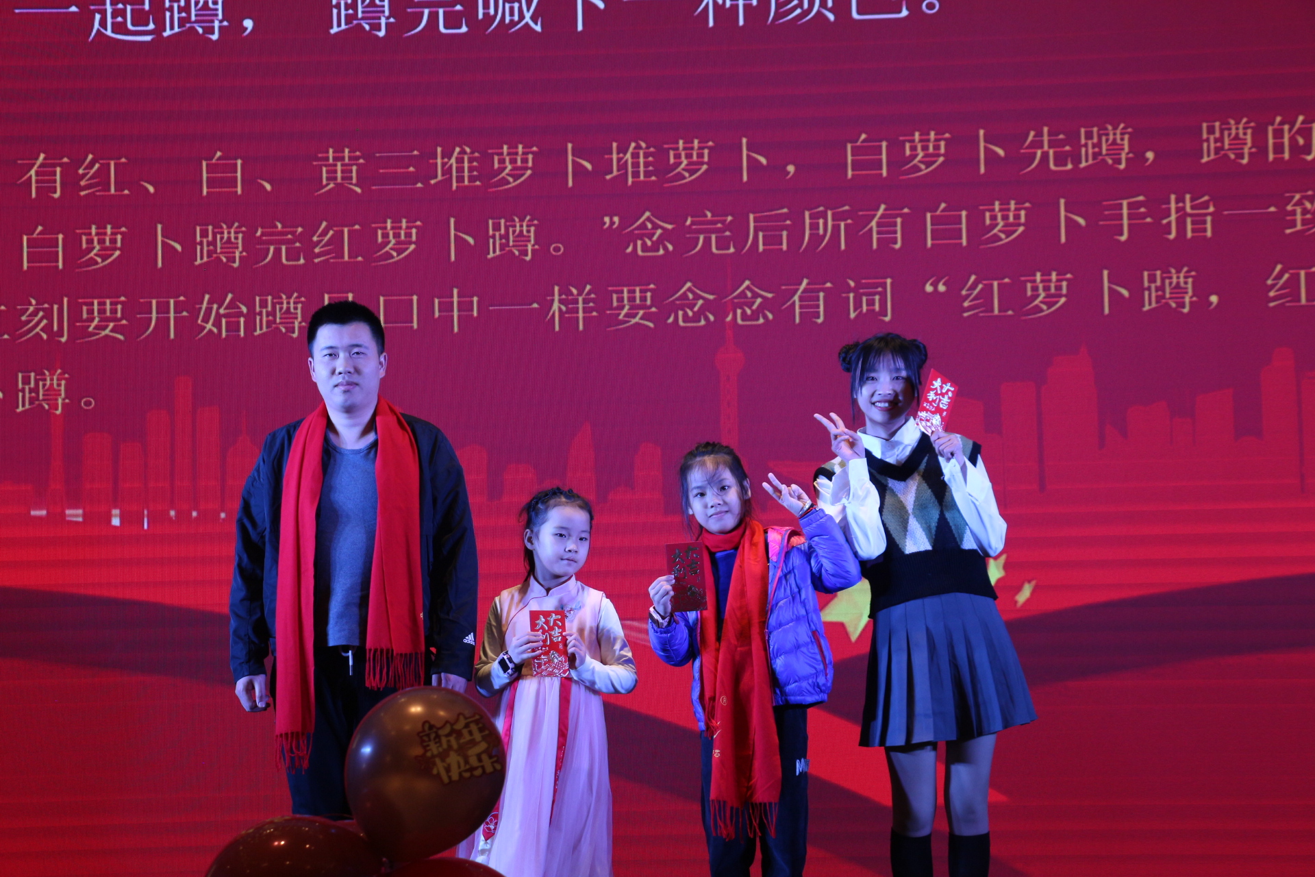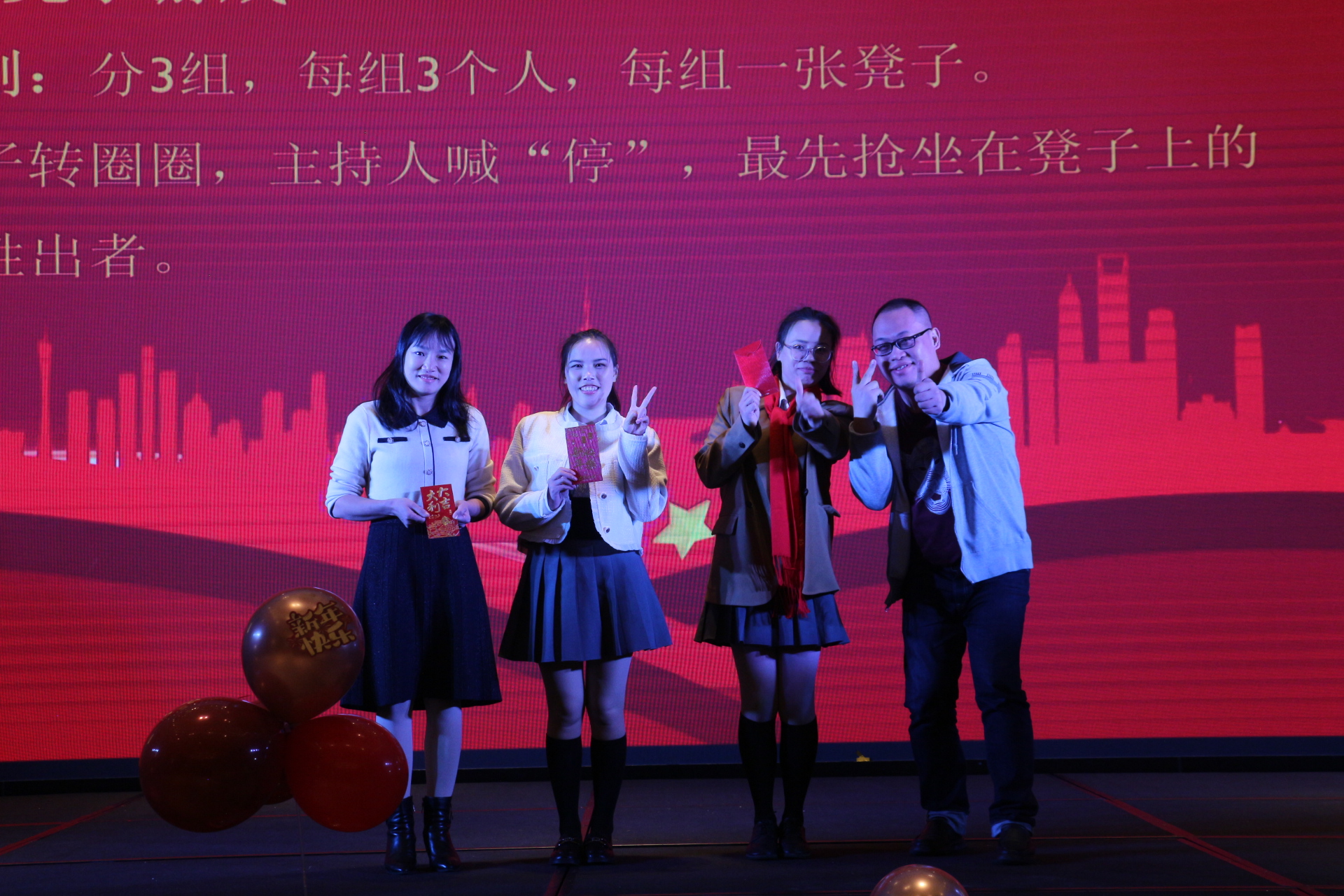 在年會的歡樂氛圍中,還有兩個充滿趣味性的游戲——搶凳子和蘿卜蹲。隨著歡快的音樂聲響起,搶凳子游戲正式開始,參與者們圍繞著凳子轉(zhuǎn)圈,眼睛緊盯著凳子,耳朵聆聽著主持的口令,當音樂突然停止時,他們需要迅速找到一個凳子坐下。一時間,現(xiàn)場充滿了歡笑聲和緊張的氣氛。緊接著是充滿趣味性的蘿卜蹲游戲,參與者們展現(xiàn)出活力的身姿。他們根據(jù)指定的口號,一蹦一跳地輪流蹲下起立,仿佛一群活潑的蘿卜在舞動。在這個游戲中,不僅鍛煉了身體協(xié)調(diào)能力,還考驗著團隊之間的默契。