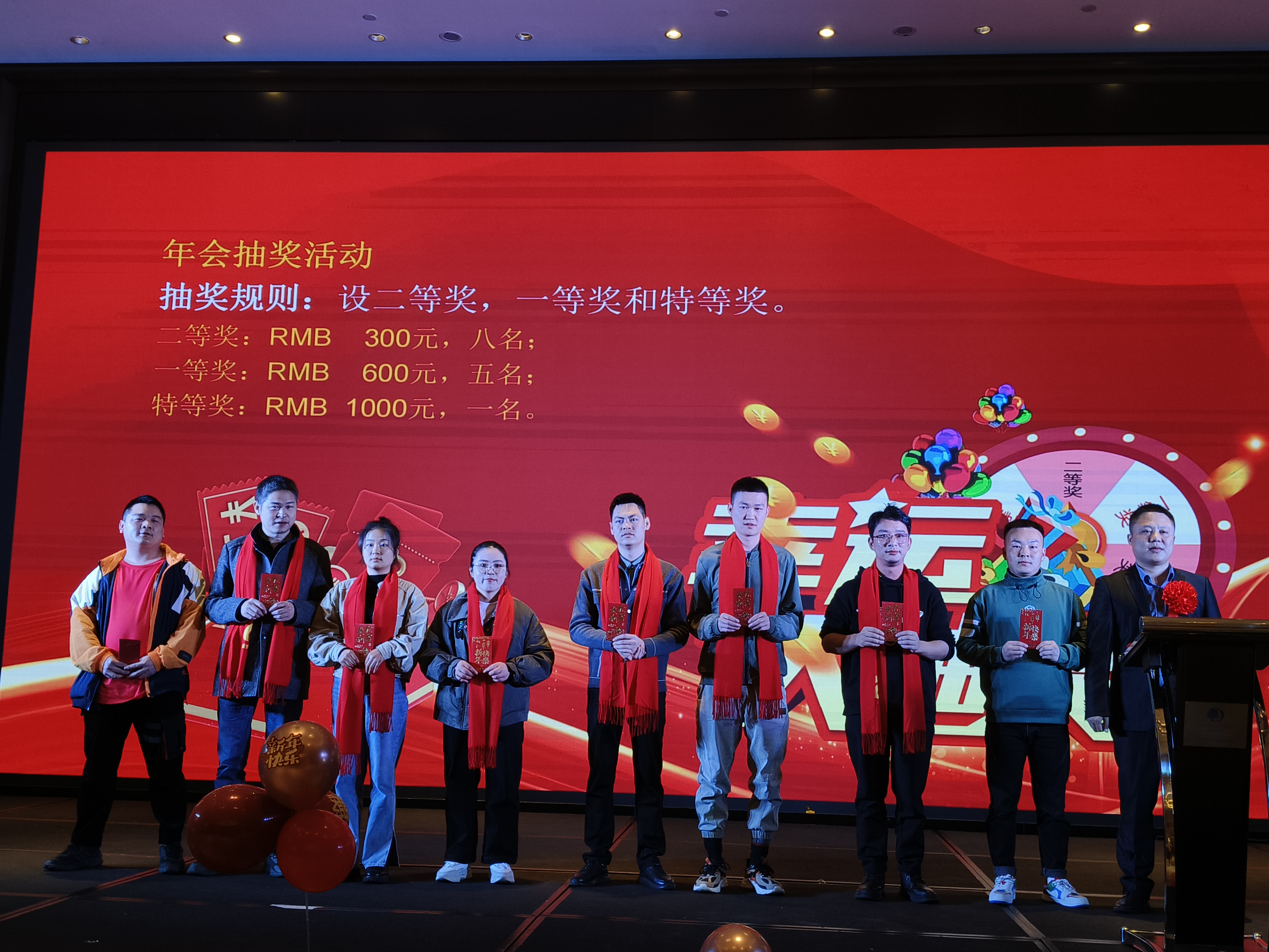 最激動人心的時刻莫過于特等獎的揭曉——RMB 1000元,全場目光都聚焦在主持人手中的名單上。當那個名字被緩緩念出時,現(xiàn)場瞬間沸騰了!特等獎的得主激動地跳躍起來,他的喜悅和興奮感染了每一個人。周圍的同事紛紛向他們表示祝賀,歡笑聲、掌聲此起彼伏,整個現(xiàn)場陷入了一片歡樂的海洋!