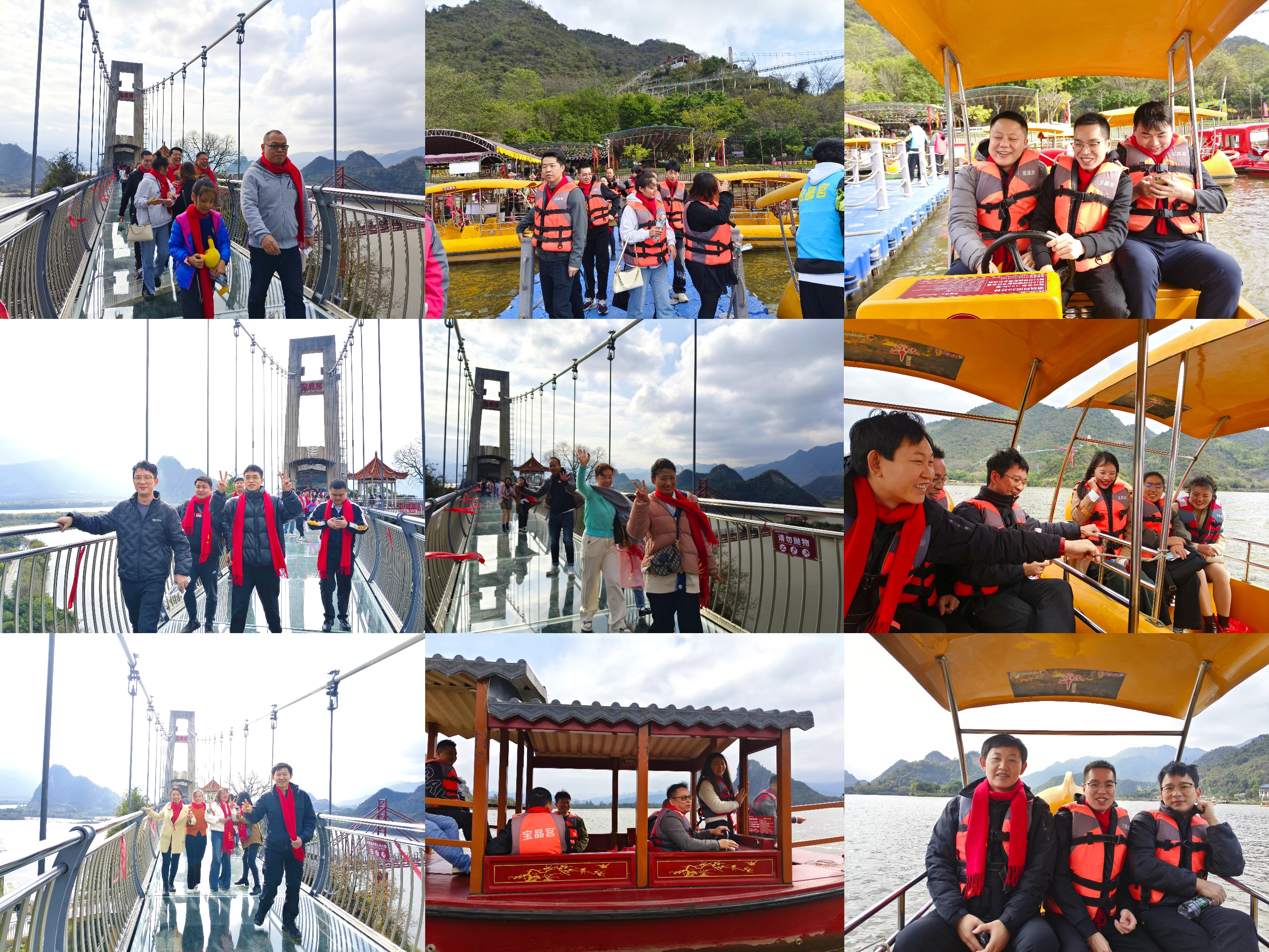 到達目的地后,首先挑戰(zhàn)了天宮玻璃橋。站在透明的橋面上,俯瞰腳下的山谷,確實令人膽戰(zhàn)心驚。但正是這樣的挑戰(zhàn)讓大家更加緊密地團結(jié)在一起,大家互相鼓勵、支持,甚至有恐高的同事也在大家的鼓勵下克服了恐懼,勇敢地走了過去。玻璃橋上留下了我們的歡聲笑語和勇敢的身影。隨后,我們來到了天鵝湖進行游船,欣賞著湖光山色,微風拂面,水波蕩漾,我們在這寧靜而美麗的環(huán)境中放松心情,感受大自然的魅力。最后,我們參觀了壯觀的溶洞,洞內(nèi)石筍、石幔等形態(tài)各異,光怪陸離,大家驚嘆于大自然的鬼斧神工,紛紛拍照留念。在溶洞出口處,有一段不走回頭路的臺階,大家相互幫助、攜手并進,沒有一個人掉隊,每個人都成功走了過去。