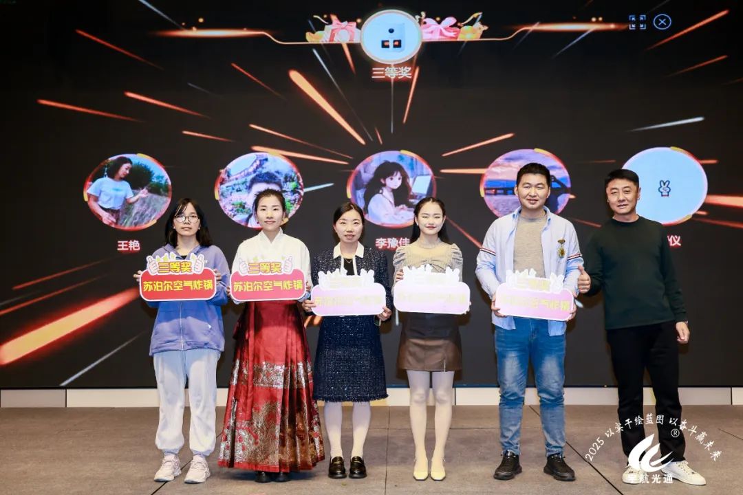 隨著年會的熱烈進(jìn)行,大家期待已久的抽獎環(huán)節(jié)終于拉開帷幕。這一時刻無疑是整個年會中最令人激動人心的時刻,因為豐厚的獎品和連連的驚喜正等待著幸運兒的到來。每位參與者都滿懷期待,心中默念著希望成為那個幸運的人。主持人首先登臺,詳細(xì)介紹抽獎的規(guī)則和令人垂涎的獎品,現(xiàn)場的目光瞬間聚焦,氣氛瞬間升溫。隨著抽獎的開始,每一個獎項的揭曉都伴隨著激動人心的時刻,現(xiàn)場氣氛越來越熱烈,歡呼聲和掌聲此起彼伏,將年會的氛圍推向一個又一個高潮。此次抽獎的獎品包括了各品牌空氣炸鍋、微波爐、泡腳桶等豐厚禮品,還有豐厚的現(xiàn)金。這些獎品不僅是對同事個人的獎勵,更是一份對家人關(guān)愛的傳遞,讓大家感受到了公司的溫暖與關(guān)懷。