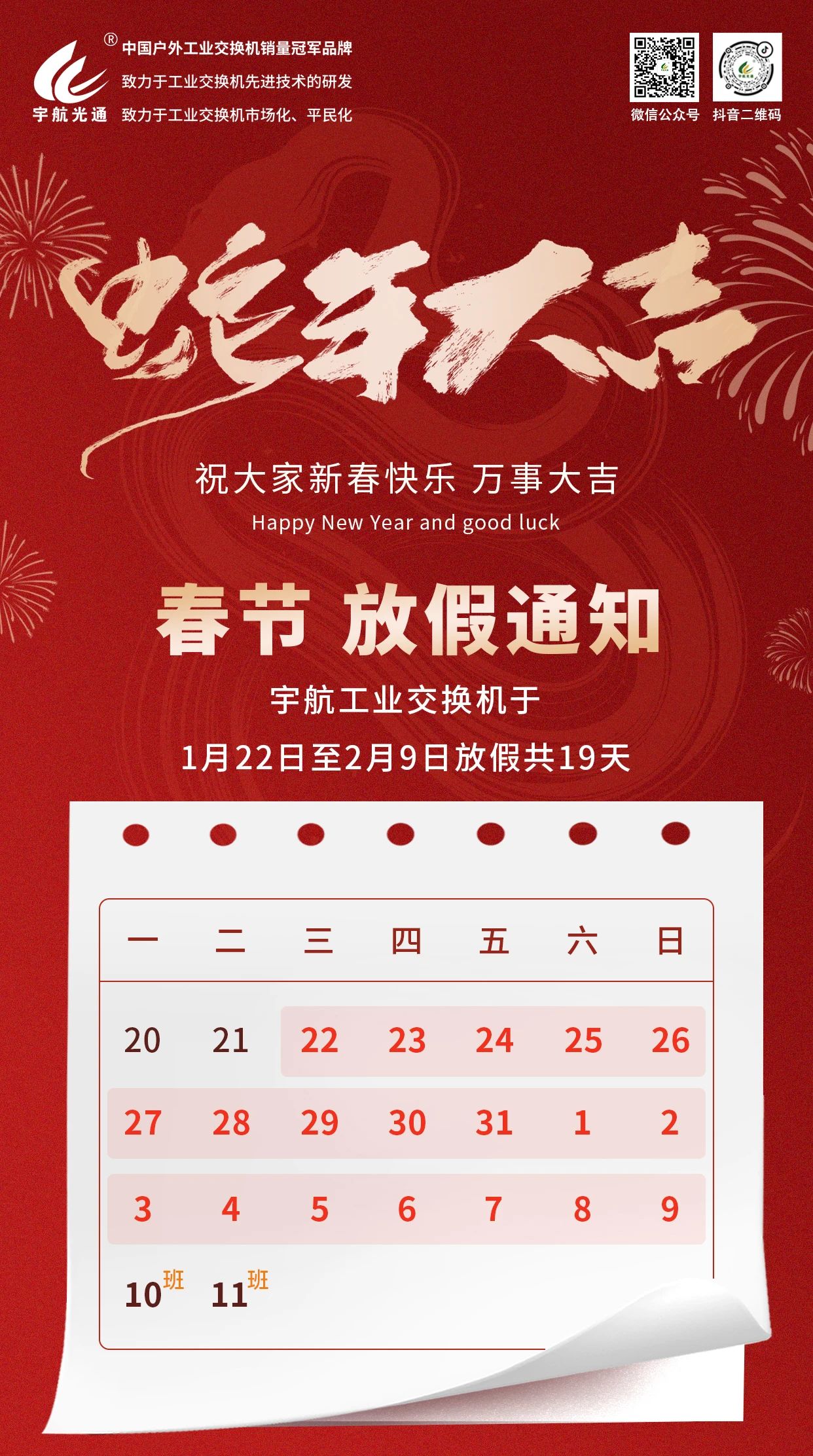 宇航工業(yè)交換機(jī)2025年春節(jié)放假通知!