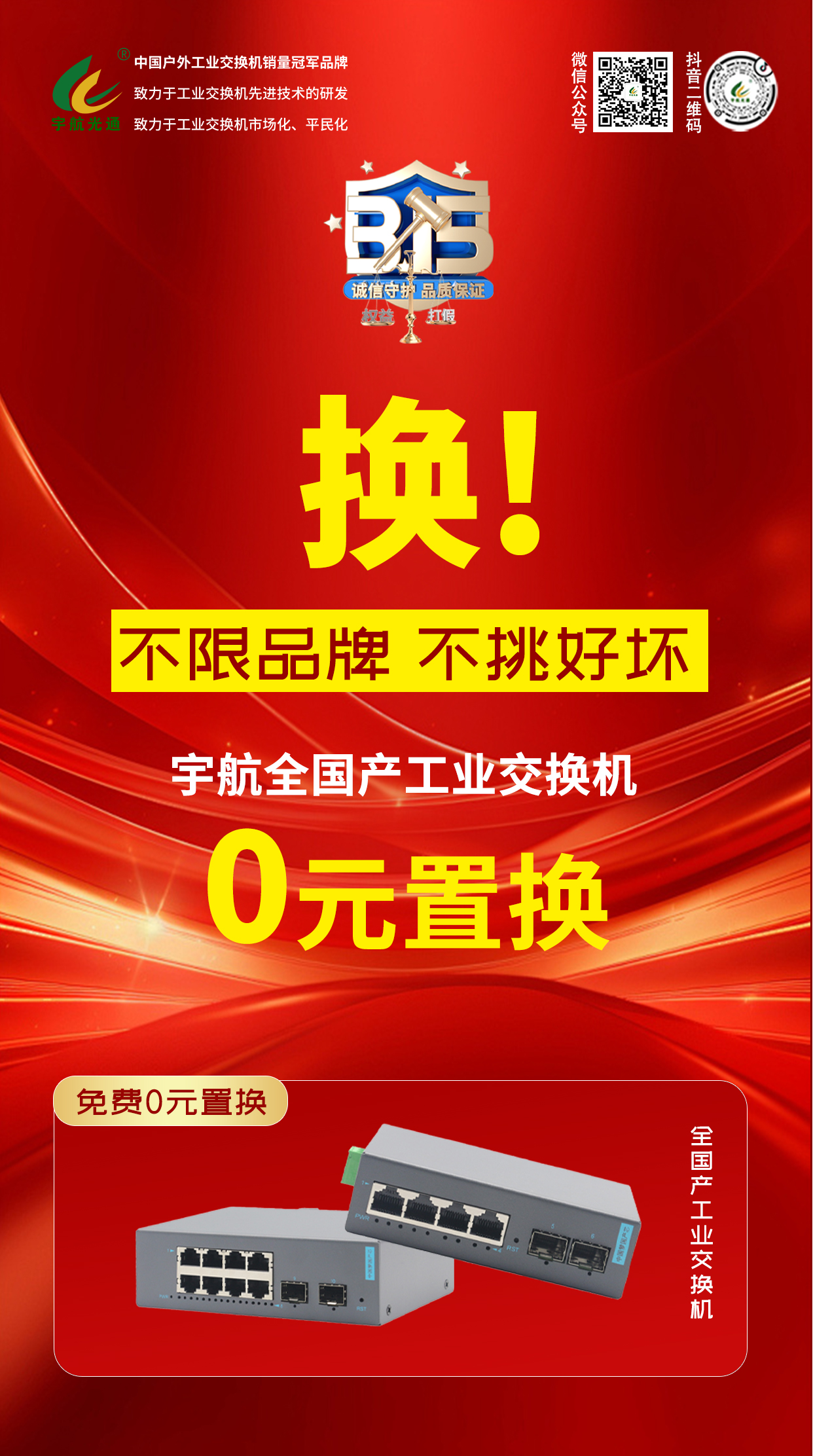 315,宇航推出:不限品牌、不挑好壞,宇航全國(guó)產(chǎn)工業(yè)交換機(jī)0元置換!