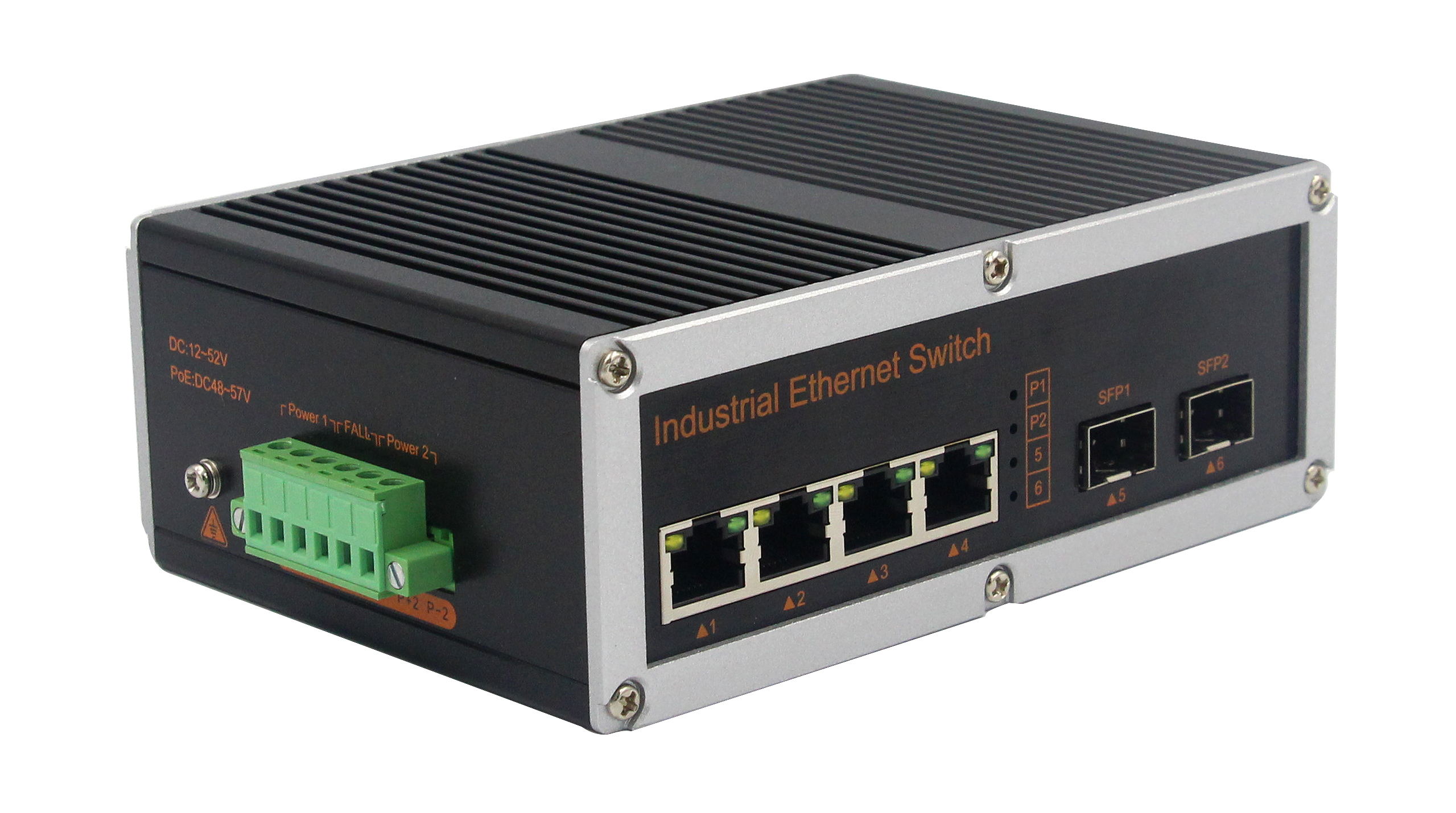 2個千兆光+4個千兆電、SFP接口(不含光模塊)、導軌式、DC12-52V供電 |